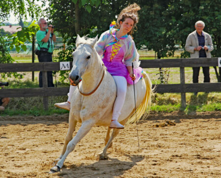 kreativen Erarbeitung von Theaterstücken mit Pferden. Mit Reiterspielen, Musik
